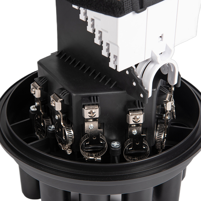 GSGSC109 광섬유 스플라이스 클로저는 표시된 검정색 케이블 타이와 같은 안전한 고정 장치를 사용하여 클로저가 단단히 밀봉되도록 합니다. 이는 오염 물질이 들어가는 것을 방지하고 조인트의 무결성을 유지합니다. 케이블 타이는 추가 보안 계층을 제공하여 열악한 조건에서도 클로저가 제자리에 유지되도록 보장합니다.